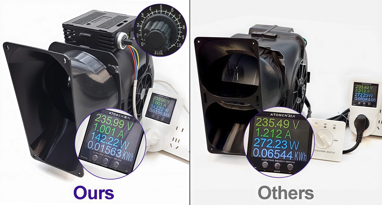 It features a high-power brushless DC motor, which offers a wider speed range, quieter operation, and 30%-50% energy savings compared to traditional AC motors.