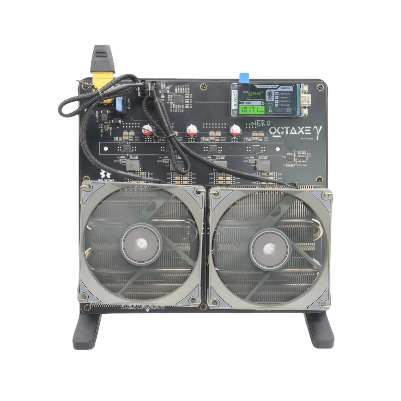 The NerdMiner NerdOCTAxe is a premium home Bitcoin miner engineered for the SHA-256 algorithm, offering a high-performance, compact, and quiet solution for both pool and solo mining.