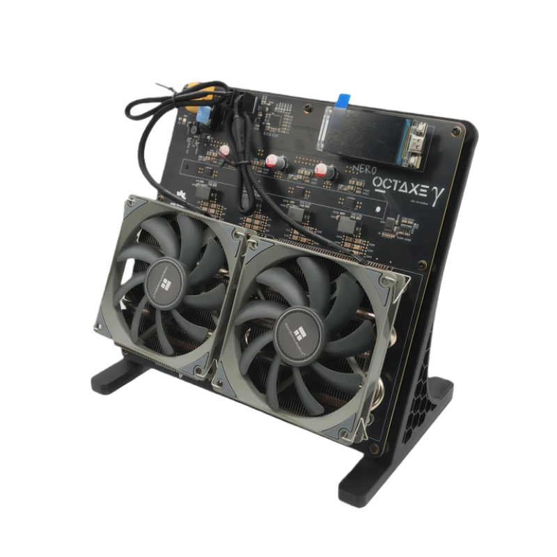The NerdMiner NerdOCTAxe is a high-efficiency SHA-256 algorithm miner delivering a maximum hashrate of 9.6Th/s with a power consumption of 160W.